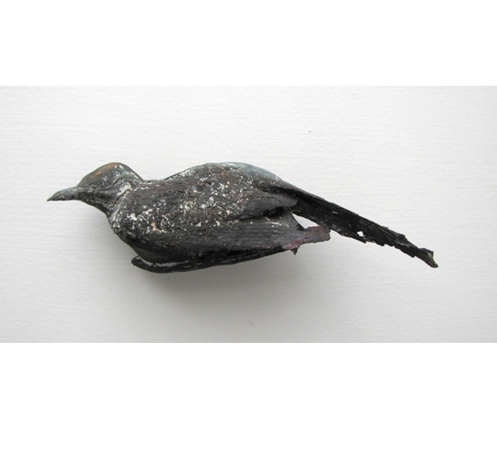 mit dem Prinzip der verlorenen Form in Bronze gegossene am Straßenrand gefundene Tierkörper von 2003 und beim Sturm auf dem Ateliergelände getötete Vögel von 2011