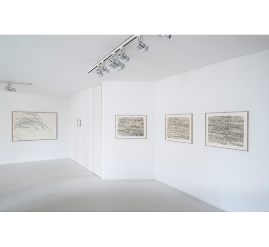 The drawing utensil functions here in the spirit of Rene Descartes´ extension of the human organ of perception. It makes visible what the artist sees. More precisely: The seeing eye and the moving hand, the optic and haptic processes are put on equal footing; together, they form a sensory apparatus and transfer the movement impulses received from outside and without hesitation onto the paper. These movement impulses defy easy availability and control by the artist. (Hans Jürgen-Lechtreck in catalogue Drawing as Process, Museum Folkwang Essen, 2008)