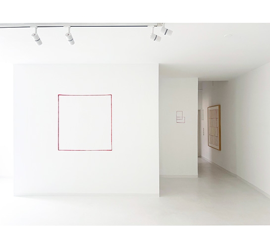 In the Marginalis group of works, the edge of the sheet becomes the defining theme. Hinsberg traces the edge of the sheet by hand with red ink and then cuts it out. The outside of the exposed line is the straight, machine-made edge of the paper, while the inside is moving, following the application of colour by hand. Presented freely on the wall, the red rectangles are fascinating.