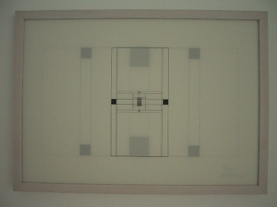 Durch den vierten Teil des Höhen- und Längenmasses einer Wand werden Höhe und Breite einer Fläche bestimmt, die über dem Schnittpunkt der beiden Diagonalen zentral auf der Wand liegt. Da im Falle der Ausstellung alle fünf Wände gleich hoch aber unterschiedlich breit sind, entstehen fünf rechteckige Flächen, die ihrerseits das gleiche Höhenmaß aufweisen, in der Breite hingegen variieren.