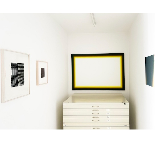 Wonkun Juns Bilder bestehen aus bis zu fünfzig Schichten wässrig dünner Acrylfarben. Er ist ein Meister des Auf- und Abtragens. So gelingt es ihm tiefgründige Farbflächen zu schaffen. Kreisrunde Felder ziehen mitunter den Blick in die Tiefe. Bei den neuesten Bildern erkennt man durch die samtig wirkende letzte Farbschicht hindurch die Struktur der Leinwände. Einige der im Sommer entstandenen Bilder sind von einem berührend schönen Grün. Es scheint in der dunklen Jahreszeit auf den nahenden Frühling zu verweisen.