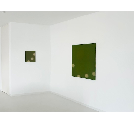 Wonkun Juns Bilder bestehen aus bis zu fünfzig Schichten wässrig dünner Acrylfarben. Er ist ein Meister des Auf- und Abtragens. So gelingt es ihm tiefgründige Farbflächen zu schaffen. Kreisrunde Felder ziehen mitunter den Blick in die Tiefe. Bei den neuesten Bildern erkennt man durch die samtig wirkende letzte Farbschicht hindurch die Struktur der Leinwände. Einige der im Sommer entstandenen Bilder sind von einem berührend schönen Grün. Es scheint in der dunklen Jahreszeit auf den nahenden Frühling zu verweisen.