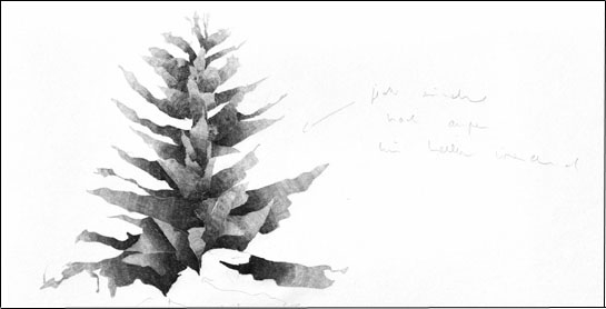 Er scheut nicht die Nähe zu großen romantisch besetzten Themen und meandriert zwischen der Analyse physischer Präsenz und philosophischer Betrachtung. Im Zentrum seiner jüngsten Bildgruppe stehen zwei Tannen. Mit dem Blick eines Forschers betrachtet er sie einzeln und in ihrer Beziehung zueinander. Er zeigt Licht- und Schattenspiele und legt Strukturen offen bis hin zur Auflösung des Motivs.